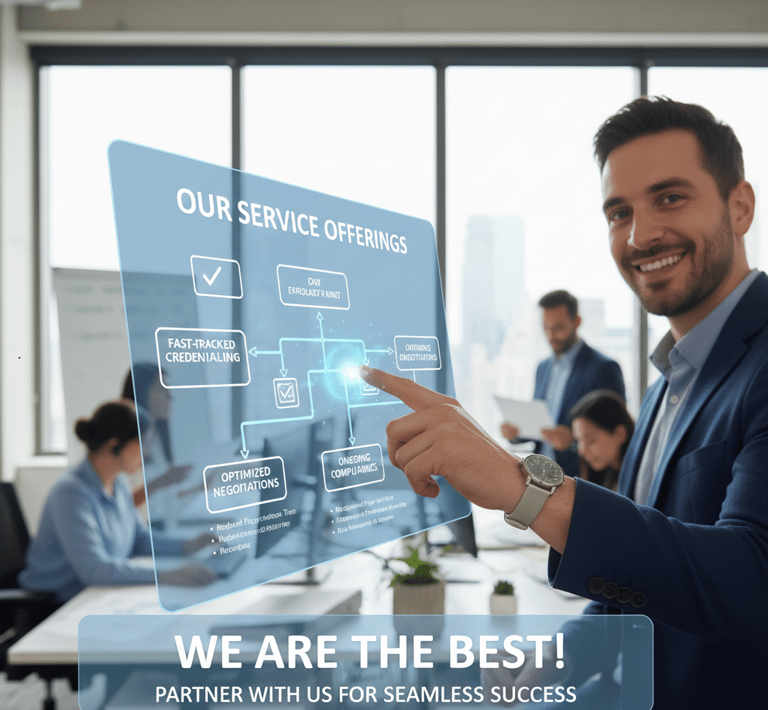 Our contracting team is highly organized and focused on efficiency. We aim for swift turnaround times on contract negotiations and credentialing submissions, ensuring our providers can begin serving your members faster.